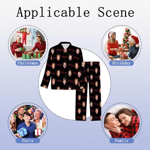 Personalized Pajamas Set with Face Text Custom Pajamas Photo Matching Pj Pants for Couples Men Christmas Valentine's Day 2