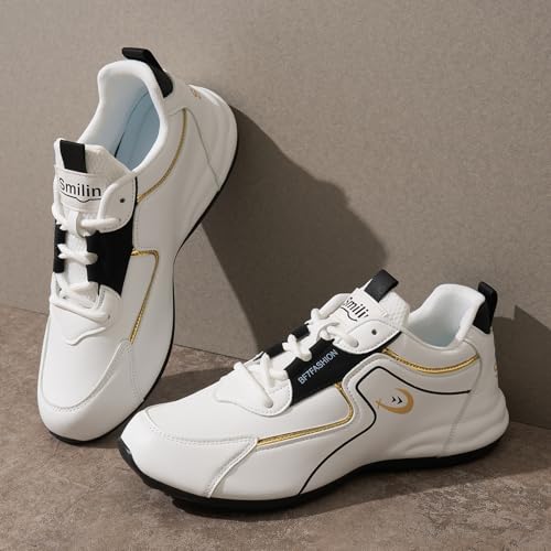 SMILIN Men's Casual Golf Shoes, Non-Slip Vegan Leather Walking Sneakers for Daily Comfort, White Street-Style Footwear for Work, Travel, or Light Sports 6