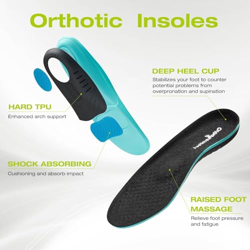 • BENEFITS: With our orthotic insoles, you get a range of benefits including improved arch support, corrected posture, relief from muscle fatigue, cushioning in the forefoot, metatarsal, and heel regions. These insoles effectively address various foot conditions such as, heel spurs, neuropathy, shin splints, bunions, achilles tendonitis, diabetes-related foot issues, overpronation, hip and back pain, and ball of foot pain. Experience a better wearing experience and make your feet happy