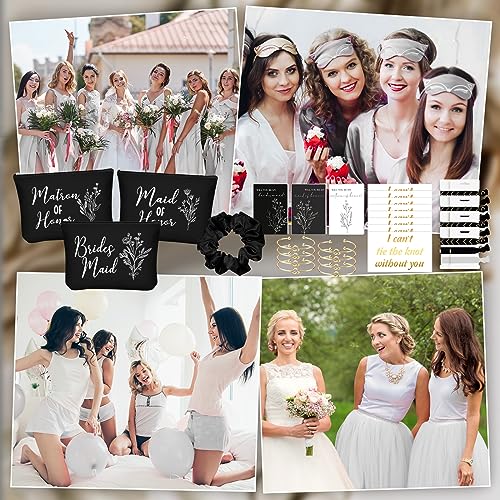48 Pcs 8 Sets Bridesmaid Proposal Gifts Bulk Wedding Will You Be My Maid of Honor Matron of Honor Bridal Shower Makeup Bags Scrunchies Bracelets Cards for Wedding Bridesmaids(Black) 5