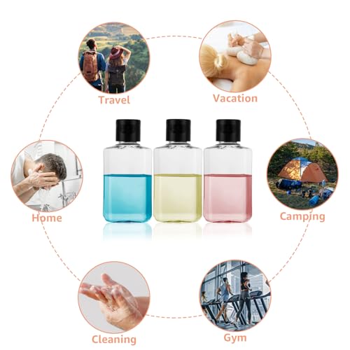 • Wide application: Our mini hand sanitizer bottles 2 oz are used to store shampoo, lotion, cream, face wash, cosmetics and all kinds of toiletries, suitable for indoor and outdoor use, such as at home, school, office, camping, traveling business trips can also be carried with you