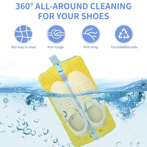 • 【SUITABLE FOR ALL SHOE TYPES AND SIZES】Whether it is running shoes, daily wear shoes or children's shoes, just put them in, add your favorite detergent, and set the machine to a gentle cycle, say goodbye to hand scrubbing!