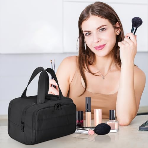 HOT ! Travel Toiletry Bag, Puffy Large Elouva Toiletry Bag for Women,4-in-1 Lightweight Waterproof Cosmetic Makeup Bag Organizer with Handle for Traveling, Accessories, Essentials, Toiletries (Black)