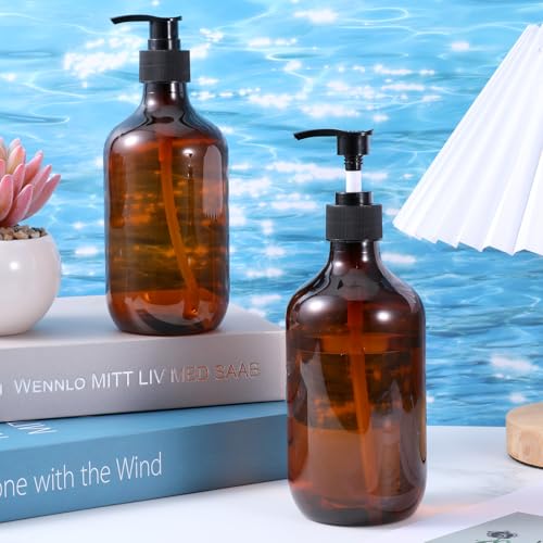 12 Packs Amber Plastic Soap Lotion Dispenser Bottles with Pump, Refillable Body Wash Container 16.9 Oz Empty Pump Shampoo Bottles Dispenser for Bathroom Travel Soap Lotion Shampoo and Conditioner 6