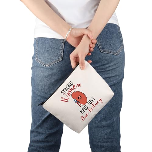 HOT ! PWHAOO Kidney Donor Gift Strong Women Need Just One Kidney Makeup Bag Kidney Transplant Warrior Cosmetic Bag One Kidney Club Merch (Just One Kidney M)