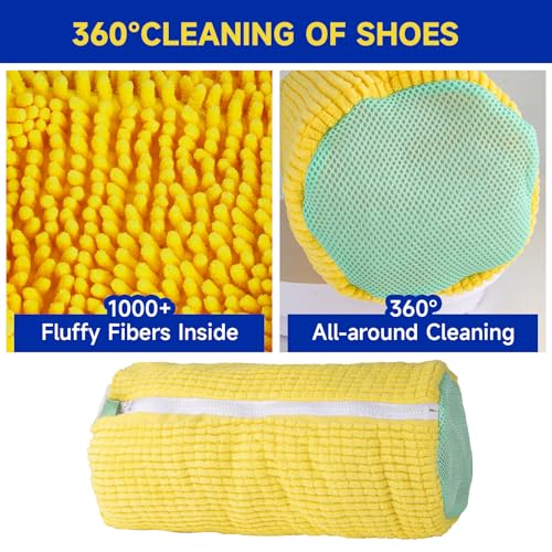 2 Packs Shoe Washing Machine Bag,Laundry Shoe Bag for Washing Machine and Dryer, 360°All-Around Cleaning Sneakers,Top Hidden Zipper,Reusable Sneaker Washing Machine Bag For All Shoe Types (Yellow) 5