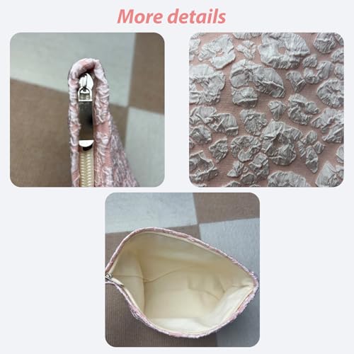 Makeup Bag Travel Cosmetic Bag for Women Floral Makeup Bag Small Cosmetic Pouch Purse with Zipper Gifts for Girlfriend and Best Friend(Pink) 4