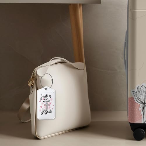 Christian Luggage Tags for Suitcases,2 Pack Baggage Tag Label with Steel Loop,Handbag School Bag Backpack Traveling Accessories,Christian Gifts,Just A Girl Who Loves Jesus 6