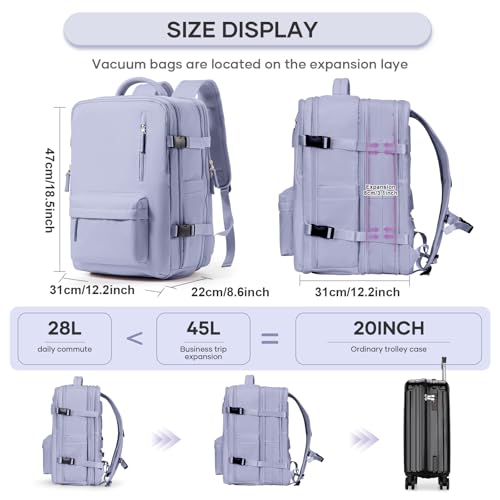 HOT ! Vacuum Travel Backpack 45L Expandable Vacpack Backpacks with Pump, Large Carry on Personal Item Compression Bags for Women, Waterproof Work Laptop Casual Daypack, Purple