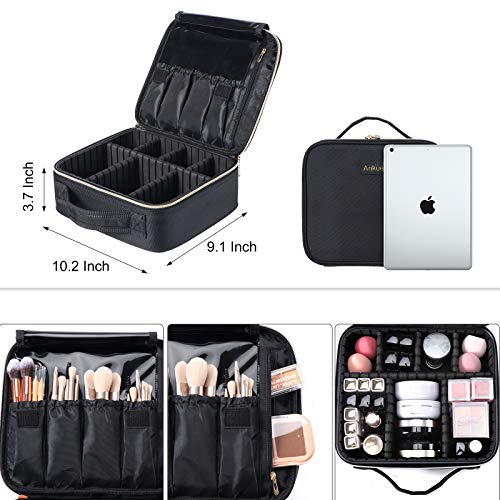 HOT ! ANKUER Travel Makeup Case: Large Cosmetic Bag with Brush Organizer Portable Makeup Bag for Women and Girls Cosmetic Case with Adjustable Dividers (Black)