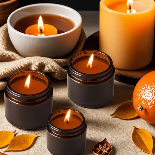 50Pcs(25×4oz + 25×2oz)Amber Glass Jars with Glossy Black & White Inner Lid Liners Airtight Small Glass Containers for Spices Candles Ointments DIY Crafts Travel Toiletries (4oz & 2oz Bundle) 3
