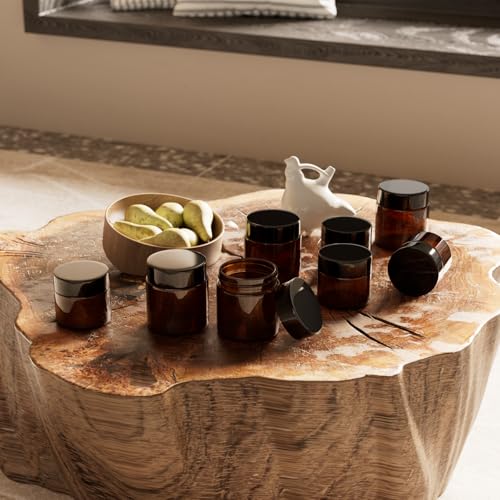 • 2.Amber Color for UV Protection: The amber hue not only adds elegance to your collection but also serves to protect your contents from harmful UV rays, helping to extend the freshness and potency of your products. These 4 oz and 2 oz amber glass jars with lids are perfect for skincare and cosmetics that require gentle preservation