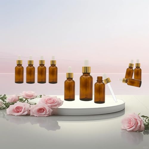 • LEAK-PROOF DESIGN: Carefully selected amber glass makes our small dropper bottles thick, smooth and shock-proof, with threaded mouths and gold caps that fit snugly to keep liquids from leaking.