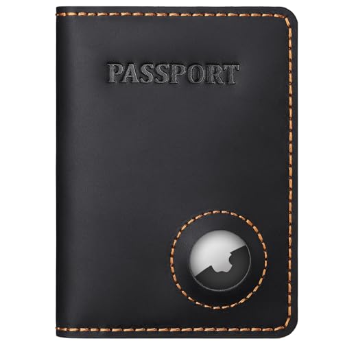 Full Grain Leather Passport Holder with Airtag Slot, Mens Air tag Travel Passort Wallet and Cover for Women PA1006-BLACK 1