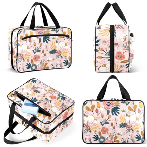 Travel Toiletry Bag for Woman/Men,Pink Floral Boho Hanging Organizer Bag with Pockets Portable Folding Travel Case Bags for Makeup Cosmetic Toiletries Storage Traveling-L 1