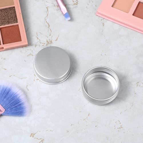 6 Pack 0.5 oz Metal Round Aluminum Tin Jar Containers with Screw Lid Leak Mini Proof Refillable Bottle Salve Tins Lip Balm Lotion Spice Cream Box for Cosmetic(silver 2