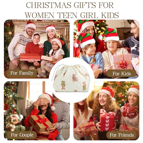 HOT ! Quilted Makeup Bag for Women, Coquette Aesthetic Cosmetic Bag, Cute Travel Toiletry Bag, Cotton Drawstring Pouch for Women and Girls