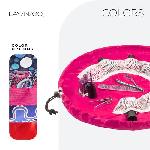 HOT ! Lay-n-Go NailSpa Drawstring Cosmetic Bag - Portable Nail Supplies Organizer Bag w/ 8 Elastic Mesh Pockets & Circular Center - Durable, Machine Washable Nail Kit Organizer (18", Pink)
