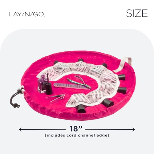 More information about Lay-n-Go NailSpa Drawstring Cosmetic Bag - Portable Nail Supplies Organizer Bag w/ 8 Elastic Mesh Pockets & Circular Center - Durable, Machine Washable Nail Kit Organizer (18", Pink)