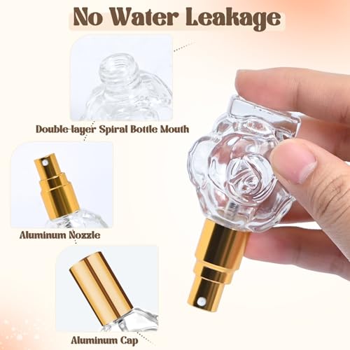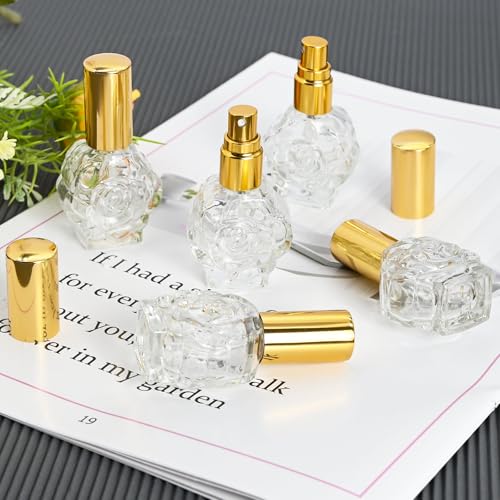 • Fashionable Rose Appearance: 5 Pcs rose perfume spray bottles is like a fine work of art, and every detail exudes elegance and luxury. The perfume travel refillable surface is engraved with delicate rose patterns, or embossed rose patterns, which adds visual layering and tactile richness. Each travel bottles 11ml, size 2.75x1.57 inches/7x4 cm. Small and portable, it can be easily put into your precious bag.