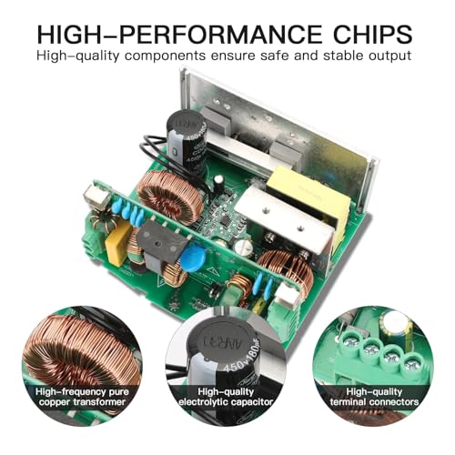 • 【High-Quality Components】: The smps power supply is equipped with built-in filtering capacitors and EMI filtering circuits, which can effectively prevent grid interference. It uses pure copper transformers to ensure stable output power and a longer lifespan. It adopts high-quality large-capacity electrolytic capacitors to provide more stable voltage. It uses flame-retardant terminal blocks, which are flame-retardant and have stronger conductivity.