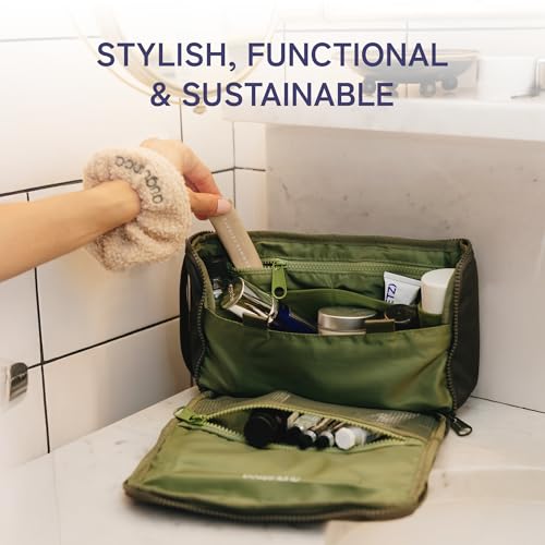 • Eco-Friendly & Durable: Made from 100% recycled rPET fabric sourced from 7 plastic bottles, this dopp kit is water-resistant, easy to clean, and designed with premium YKK zippers for long-lasting use.