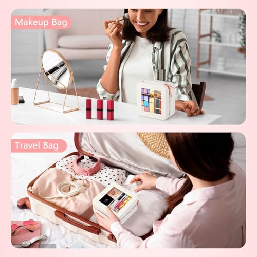 • Mini but Mighty: Measuring 5.12” x 5.12”x 2.76”, compact yet surprisingly spacious, this small travel makeup bag is perfect for holding essentials like lip balms, hand cream, lip gloss, keys and charging cords. Slip it into your purse or backpack for easy access to your must-haves anytime, anywhere