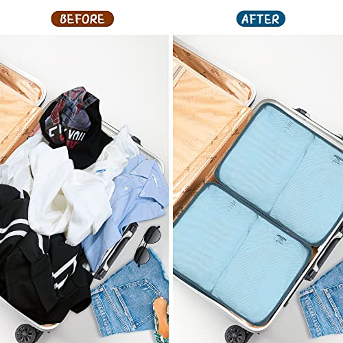 • [Perfect Design]: The structure of the cube can hold more items. The top mesh panel of storage bags not only helps to make the bags breathable and ventilated, but also helps to quickly identify items in the luggage. The zippers on the sides can be easily pulled out for access to items conveniently.