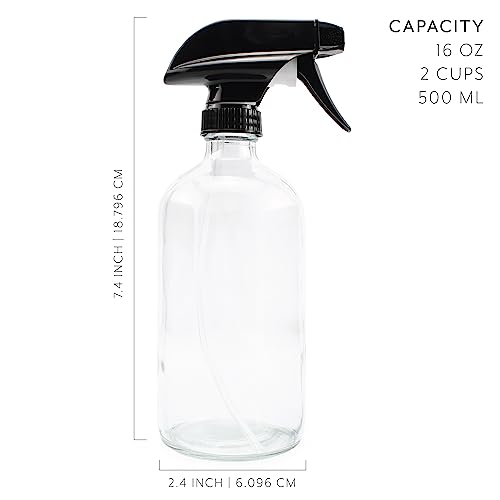 • ECOnoMY 6-PACK: You get six empty 16-ounce capacity glass boston round bottles, 6 black heavy duty sprayer tops with 3 settings