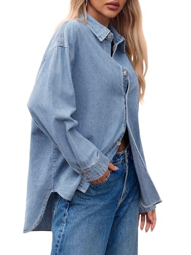 More information about Cicy Bell Womens Oversized Denim Shirt Jean Jacket 2025 Fall Fashion Button Down Shirts Long Sleeve Tops Trendy Shackets
