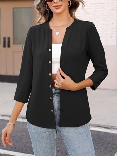 ORANDESIGNE Women's Button Down T Shirts 3/4 Sleeve V Neck Tops Casual Summer Ladies Tees 3