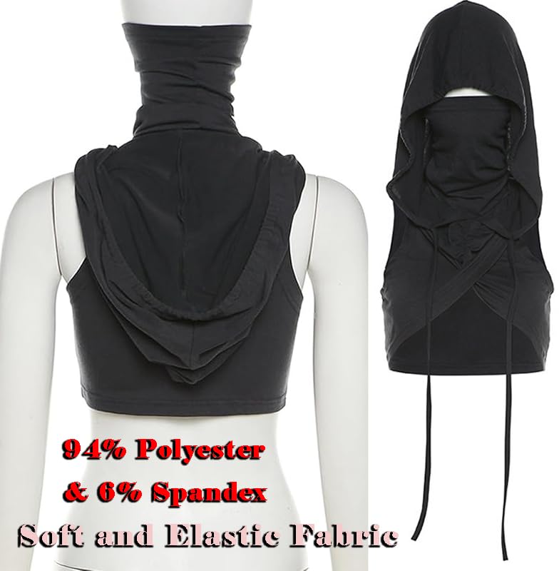 Women Hooded High-Neck Crop Top Sexy Sleeveless Streetwear Festival Rave Outfits 5