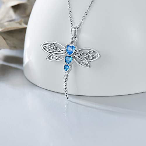 HOT ! RMREWY Dragonfly 925 Sterling Silver Heart Celtic Necklace for women crystal Birthstone Jewelry Mother’s Day Birthday Gift for Sister Mom wife Dragonfly Lovers