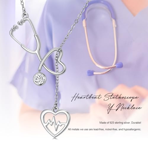 Nurse Stethoscope Necklace 925 Sterling Silver Stethoscope Pendant Jewelry Nurse Gifts for Women Girlfriend Nurses 5