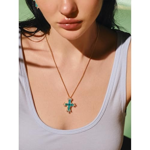 • Materials: Crafted with 24k gold plated copper, Paraiba and Cubic Zirconia. Our cross necklace is hypoallergenic, nickel free, lead free, and resistant to tarnishing and discoloration, ensuring long lasting durability; say goodbye to green skin and faded colors