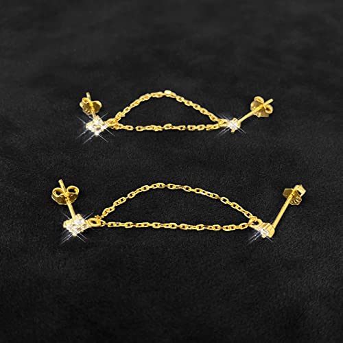 • 💖【SUPERIOR QUALITY】Double Stud Chain Tassel Pierced Earrings in Sterling Silver 18K Gold Plated and Set with Four High Quality Zircons that sparkle to make you shine and add glamour to your everyday fashion wear.