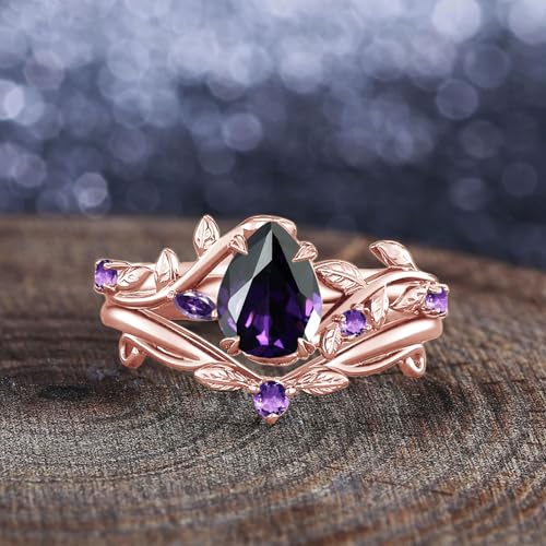 1.5CT Amethyst ring Sterling Silver/10k 14k 18k gold Pear Shape Alexandrite wedding ring set for womens Valentines day 2