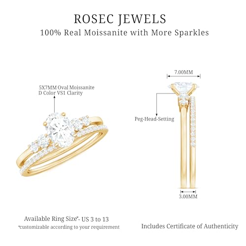 Moissanite Solitaire Ring Set with Stackable Band, 5X7 MM Oval, 1 Carat, Engagement Wedding Ring, 14K Yellow Gold, Size:US 8.75 2