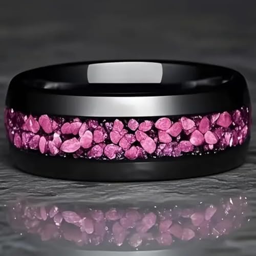 8mm Stainless Steel Black Pink Shining Flower Style Wedding Band Ring 1