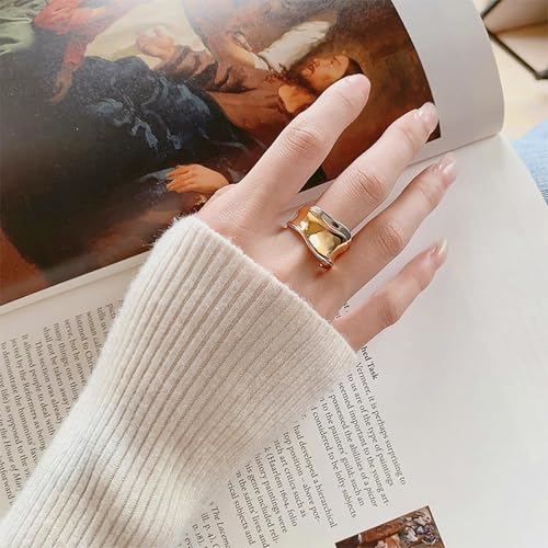 Wave Irregular Wide Chunky Statement Rings for Women Gold Plated Minimalist Simple Classic Ring Open Band Wrap Finger Rings Comfort Fit Birthday Party Wedding Jewelry Gift 6