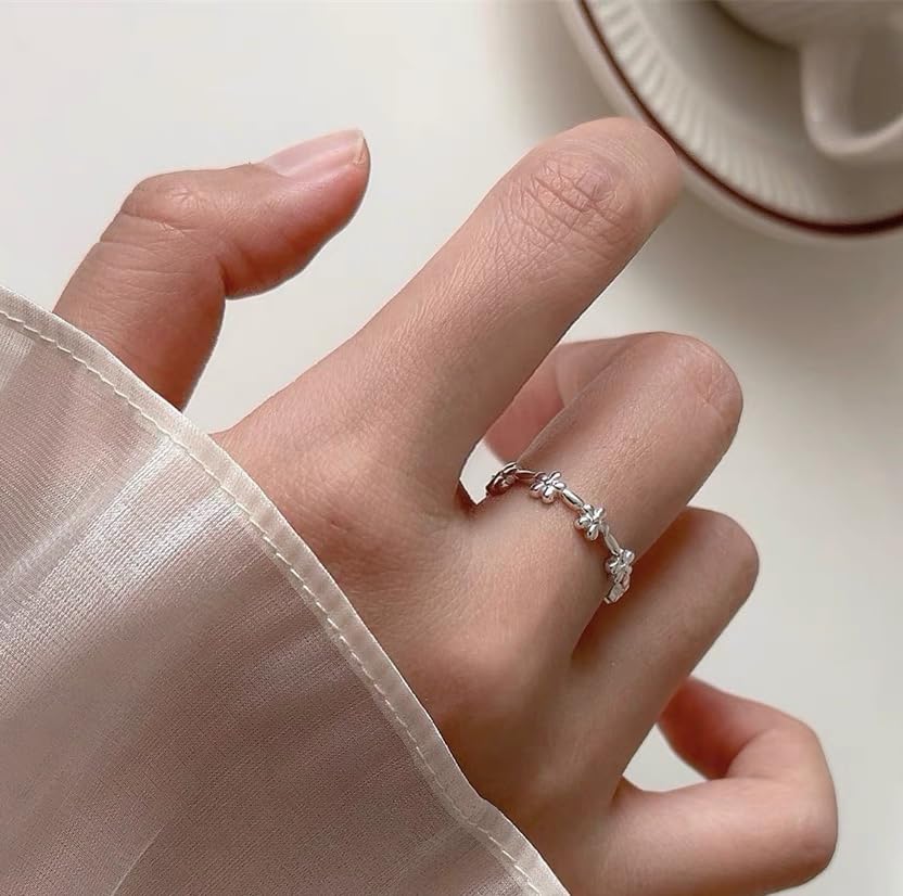 HOT ! Dainty Daisy Flower Open Thin Band Ring for Women Small Tiny Cute Delicate Sunflower Stacking Adjustable Finger Rings Simple Floral Engagement Wedding Promise Summer Comfort Fit Jewelry
