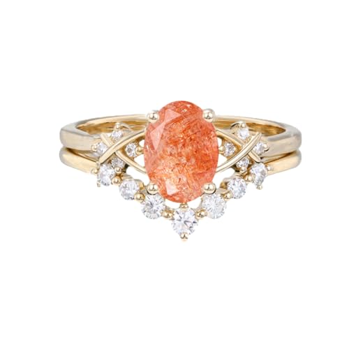 • 【Unique Gift】: Our sunstone bridal wedding ring sets come in a beautiful jewelry box, ensuring they arrive ready to be used as gifts. This ring is the perfect gift for your lover, mom, wife, grandmother, fiancée, daughter, girlfriend, best friend and more. Perfect gift for any occasion such as Valentine's Day, Anniversary, Christmas, Mother's Day, Birthday, Engagement, Wedding and more.