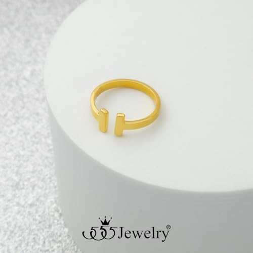 555Jewelry Stainless Steel Rings for Women Double Bar Ring Statement Pinky Promise Ring Jewelry Silver and Gold Rings Wedding Engagement Open Band Ring | US Ring Size 6-8 5
