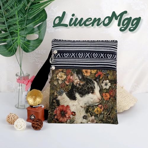 Floral Curly Cat Messenger Bag Small Ethnic Pattern Printed Adjustable Strap Crossbody Zipper Bag Floral Curly Cat Phone Bag Wallet Cute Shoulder Handbag for Women Friends 4