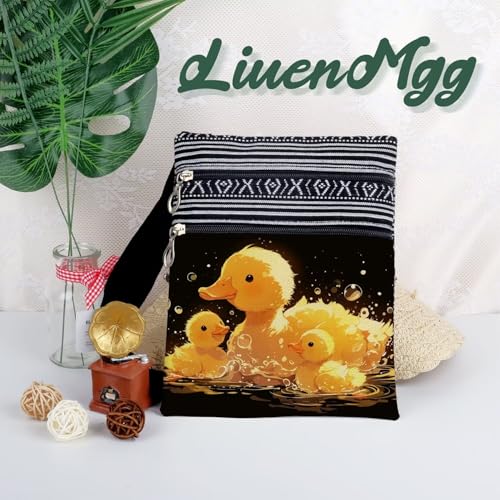Rubber Duck Messenger Bag Small Ethnic Pattern Printed Adjustable Strap Crossbody Zipper Bag Rubber Duck Phone Bag Wallet Cute Shoulder Handbag for Women Friends -5 6