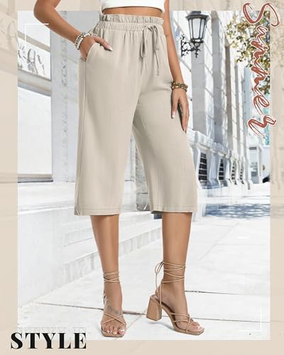 • Design: our women's linen cropped pants feature a loose fit, wide legs, high waist, ruffle trim elastic waist and 2 deep pockets, comfortable, not tight, fashionable, and convenient for storing mobile phones and other items