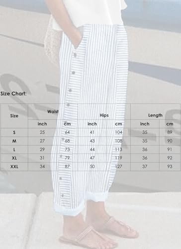 HOT ! Women's Casual Loose Fit Striped Pants Wide-Leg Style with Side Buttons and Pockets