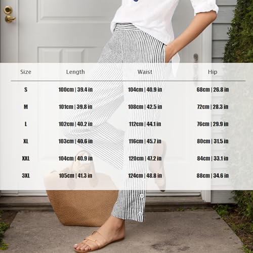 HOT ! TIAFORD Women's Casual Loose Striped Straight Wide Leg Pants Summer Elastic Waist Beach Petite Pants with Pockets
