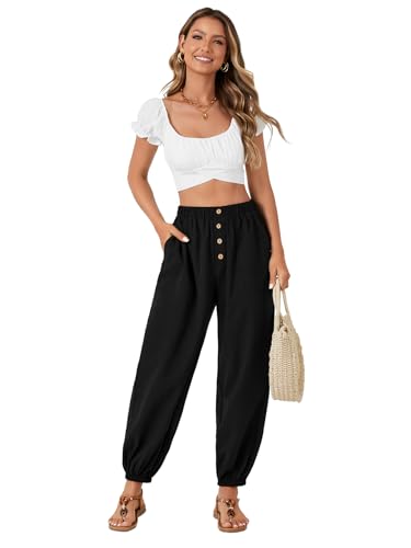 More information about LYANER Women's Casual Elastic High Waist Buttons Decoration Baggy Loose Wide Leg Ankle Pants Black X-Large