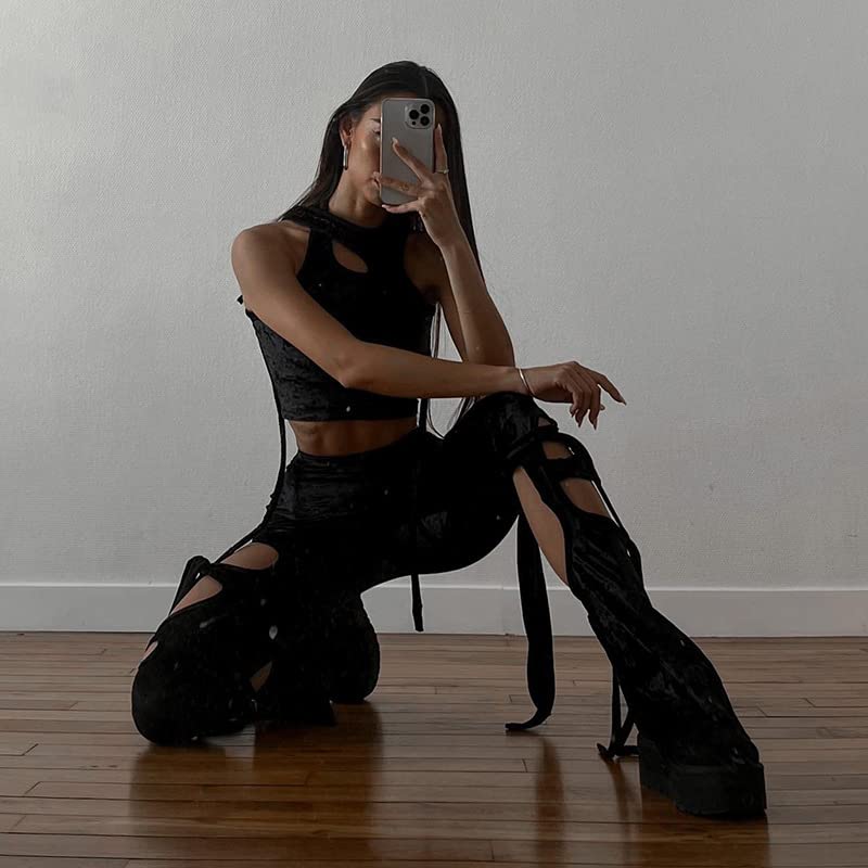 heyheyshine Women's Y2K high waist hollowed out velvet straight leg pants with pants women 3